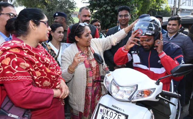 कोटद्वार, विधानसभा अध्यक्ष ऋतु खण्डूडी भूषण ने कोटद्वार में साप्ताहिक सड़क सुरक्षा जागरूक अभियान का शुभारंभ करते हुए लोगों को हेलमेट वितरण कर यातायात के प्रति जागरूक किय। इस दौरान विधानसभा अध्यक्ष ने सभी को ट्रैफिक नियमों को पालन करने की शपथ दिलाई।