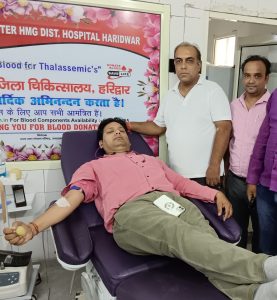 संकल्प वेलफेयर सोसायटी द्वारा हरिद्वार ब्लड बैंक में रक्तदान शिविर का आयोजन किया गया । इस अवसर पर रविश भटीजा ने कहा की रक्तदान करने से किसी प्रकार की कोई कमजोरी नहीं आती आपके द्वारा दिया गया रक्त किसी के प्राणों की रक्षा करता है रक्तदान पुण्य का काम है भविष्य में भी रक्तदान के शिविर लगाए जाएंगे लोगों के बीच जाकर रक्तदान करने के लिए जागरूक किया जाएगा।