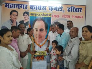 वहीं महानगर कांग्रेस कमेटी हरिद्वार के तत्वाधान में आज महानगर कांग्रेस कार्यालय निकट अशोका टाकीज, हरिद्वार में स्व.राजीव गांधी का 78 वा जन्मदिन उनके चित्र पर माल्यार्पण कर पुष्पांजलि अर्पित की तथा विचार गोष्ठी आयोजित की गई।