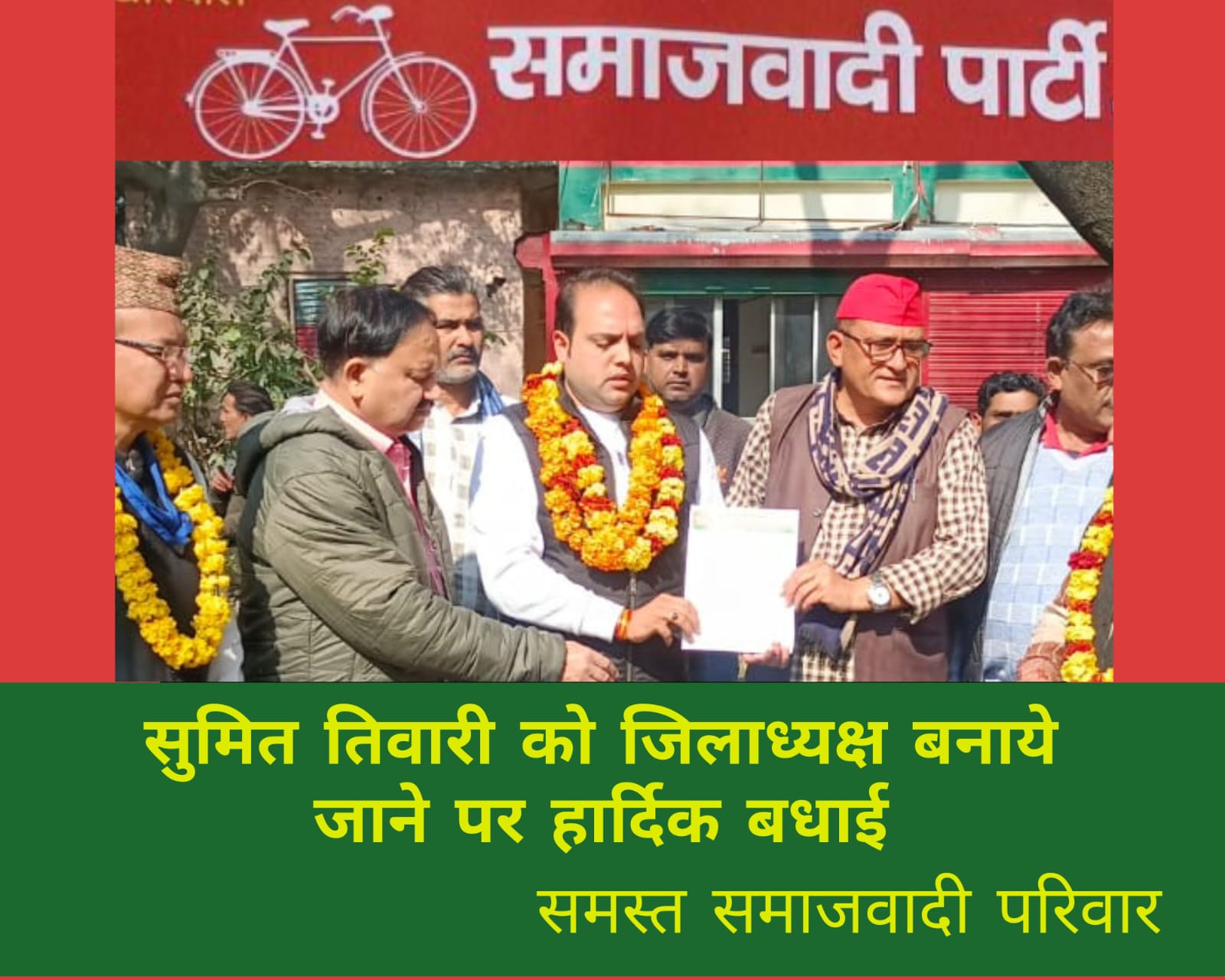 प्रमुख संवाददाता कालू दिनांक 1 फरवरी 2023 सुमित तिवारी बने समजवादी पार्टी के जिलाध्यक्ष सामाजवादी...
