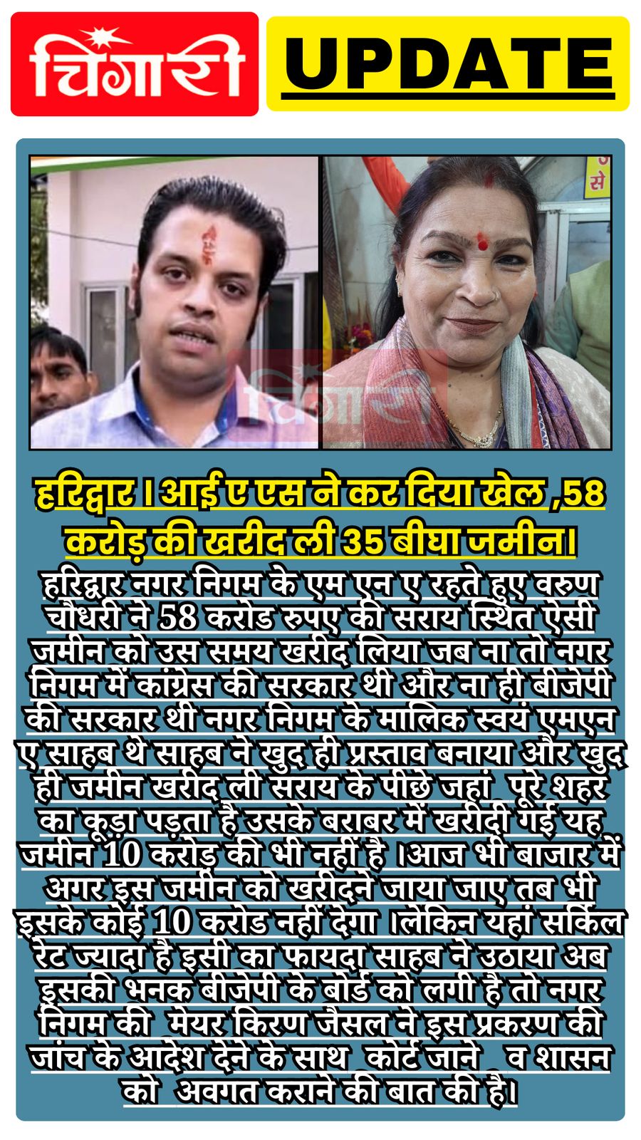 हरिद्वार । हरिद्वार नगर निगम के पूर्व नगर आयुक्त वरुण चौधरी द्वारा किए गए 58...