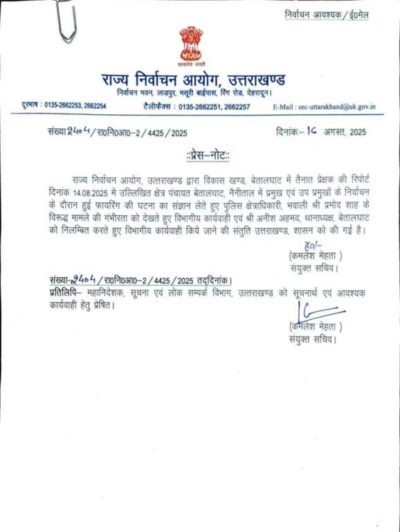 पुलिस क्षेत्राधिकारी, भवाली प्रमोद शाह के विरूद्ध विभागीय कार्यवाही अनीश अहमद, थानाध्यक्ष, बेतालघाट को निलम्बित...