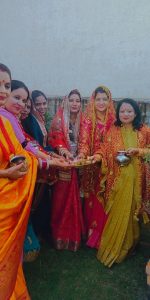 इस पावन अवसर पर कविता न्यूली, गंगा बुद्धा, पुष्पांजलि, मीनाक्षी दीक्षित, दुर्गा चौहान, पूनम चौहान, पूनम यादव, संतोषी सैनी आदि सुहागिनों ने व्रत रखकर करवा चौथ की कथा सुनी और उसके बाद सूर्य देव को अर्घ्य देते हुए पूजा अर्चना की।