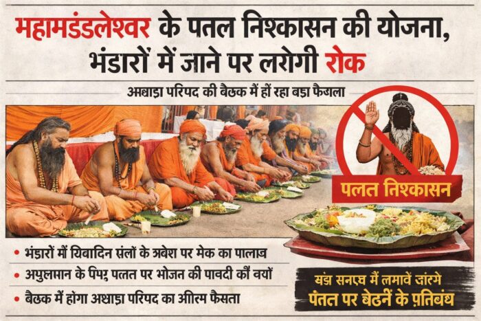 संतों में चर्चा है कि जब एक महामण्डलेश्वर को अखाड़े से वहिष्कृत किया हुआ है तो उसे निमंत्रण देने का कोई औचित्य नहीं। यदि कोई बुलाता है तो वह गलत है। यदि महामण्डलेश्वर बिना बुलाए पधारते हैं तो भी उचित नहीं कहा जा सकता। इन सबको देखते हुए अब महामण्डलेश्वर का पत्तल वहिष्कार किए जाने की योजना को अमल में लाए जाने की तैयारी की जा रही है। जिसके चलते अब अन्य अखाड़ों-आश्रमों में होने वाले भण्डारों में महामण्डलेश्वर का एक तरह से प्रवेश निषेध हो जाएगा।
