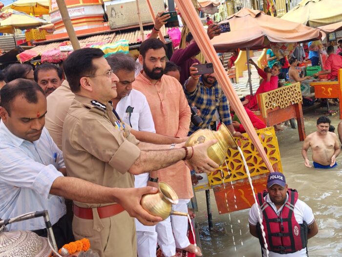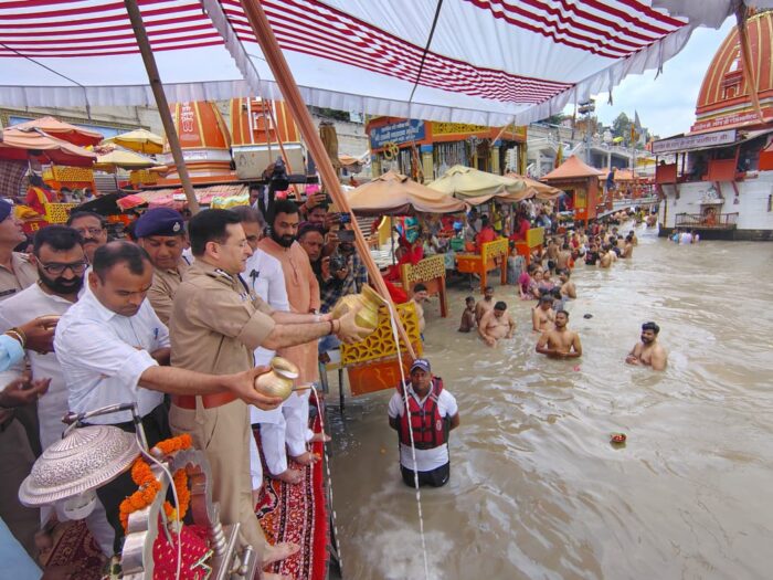 आज दिनांक 11-07-25 को कांवड़ मेले की तैयारियों को परखने हरिद्वार पहुंचे डीजीपी उत्तराखंड दीपम सेठ द्वारा हर की पैड़ी पर मां गंगा जी का पूजन कर सकुशल मेला सम्पन्न कराए जाने हेतू मां गंगा का आशीर्वाद लिया।