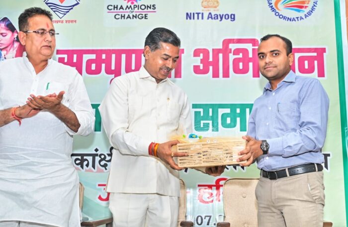 शुभारंभहरिद्वार। जिलाधिकारी मयूर दीक्षित, जिला पंचायत अध्यक्ष किरण सिंह चौधरी, विधायक रानीपुर आदेश चौहान और मुख्य विकास अधिकारी आकांक्षा कोण्डे ने सम्पूर्णता अभियान सम्मान समारोह का दीप प्रज्वलित कर शुभारंभ विकास भवन सभागार में किया।