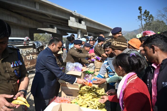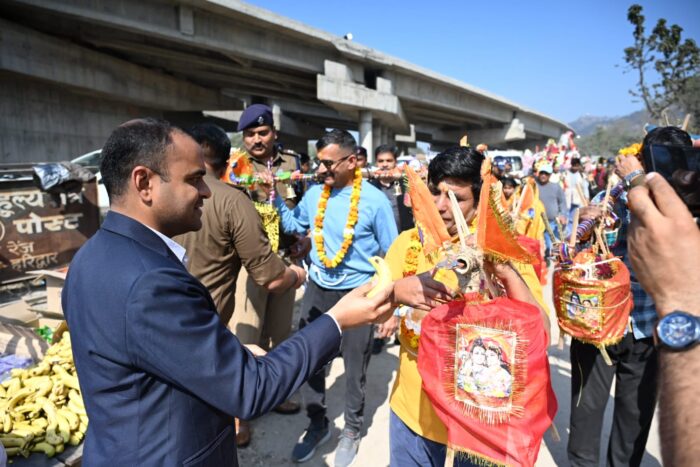 जिलाधिकारी मयूर दीक्षित एवं वरिष्ठ पुलिस अधीक्षक प्रमेंद्र सिंह डोभाल ने कांवड़ यात्रियों को फल एवं जलपान वितरित कर अतिथि देवो भव की परंपरा से किया स्वागत