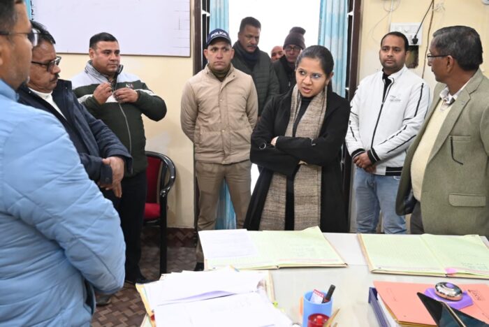 टिहरी। आज गुरुवार को जिलाधिकारी टिहरी गढ़वाल नितिका खण्डेलवाल द्वारा नरेंद्रनगर स्थित पुराने कलेक्ट्रेट परिसर में संचालित विभिन्न कार्यालयों का प्रातः औचक निरीक्षण किया गया।