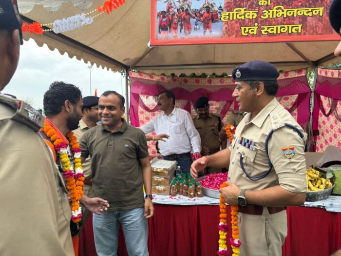 काफिले के अलकनंदा तिराहे पर रुकने पर जिलाधिकारी एवं एसएसपी द्वारा वहां से गुजर रहे कांवड़ यात्रियों को फल, पानी, शीतल पेय, बिस्किट एवं ग्लूकोज इत्यादि सामग्री वितरित कर मंगल यात्रा की शुभकामनाएं दी।