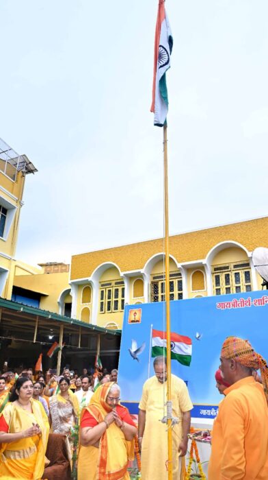 हरिद्वार 15 अगस्त। गायत्री तीर्थ शांतिकुंज, देवसंस्कृति विश्वविद्यालय एवं गायत्री विद्यापीठ में 79वाँ स्वतंत्रता दिवस उत्साह और उमंग के साथ मनाया गया। पूरे परिसर में देशभक्ति का उल्लास और राष्ट्रीय प्रेम की भावना स्पष्ट रूप से झलक रही थी। तिरंगा फहराते हुए देश के वीरों को श्रद्धांजलि अर्पित की गई और उनके आदर्शों को स्मरण करते हुए देशसेवा की प्रेरणा ली गई।