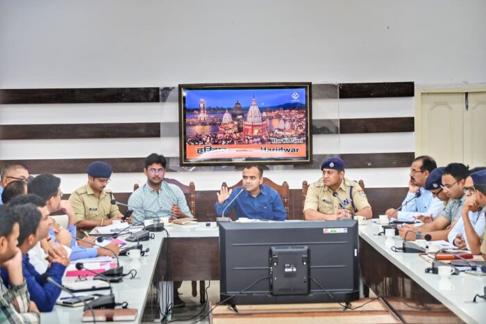 हरिद्वार । कावंड मेले को सुगम, सुव्यवस्थित एवं सफलतापूर्वक सम्पन्न कराने के लिए की जा रही तैयारियों एवं व्यवस्थाओं के संबंध में जिलाधिकारी मयूर दीक्षित की अध्यक्षता में जिला कार्यालय सभागार में संबंधित विभागीय अधिकारियों एवं पुलिस अधिकारियों के साथ समीक्षा बैठक आयोजित की गई, जिसमें वरिष्ठ पुलिस अधीक्षक प्रमेंद्र सिंह डोभाल भी मौजूद रहे।