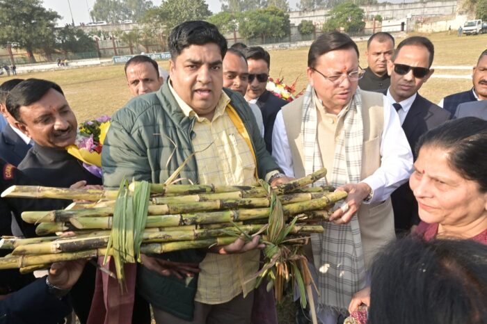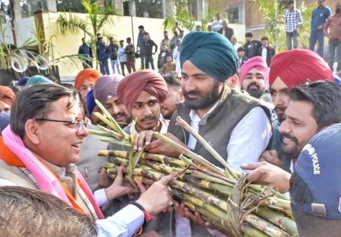 किसानों ने मुख्यमंत्री को गन्ना भेंट कर “किसान पुत्र” की उपाधि से सम्मानित किया।