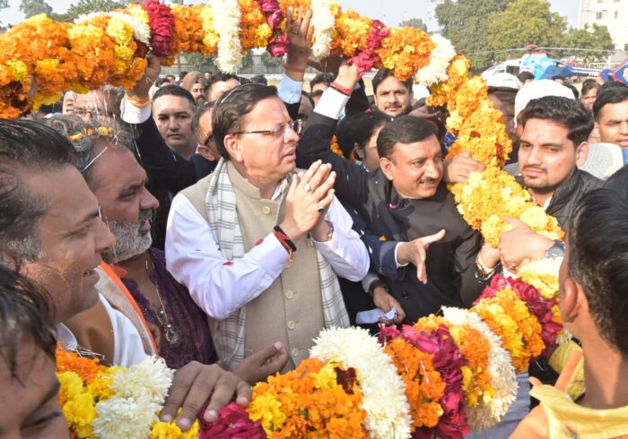 किसानों ने गुरुकुल कांगड़ी हेलिपैड पर मुख्यमंत्री का फूलों की माला व पुष्पवर्षा के साथ भव्य स्वागत किया।