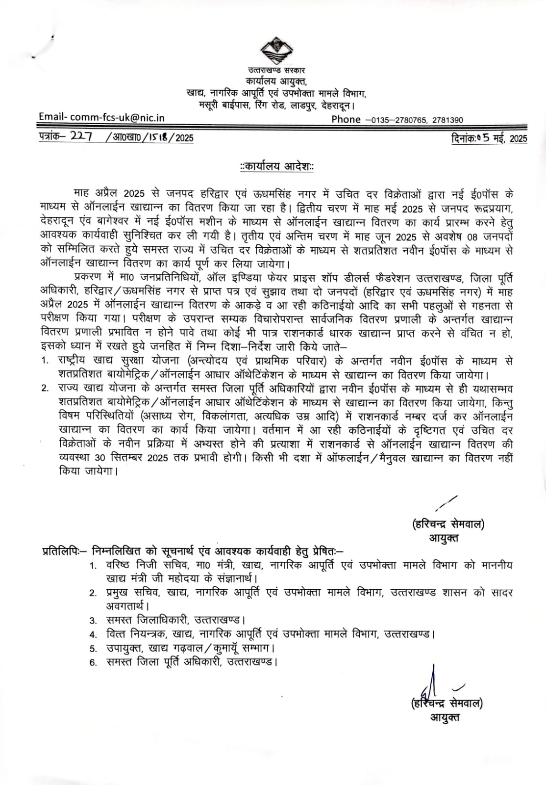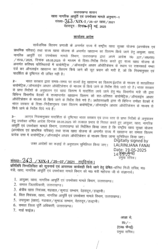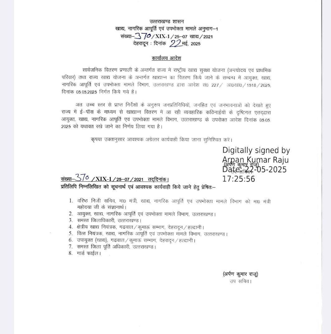 राज्य सरकार ने 5 मई को एक आदेश जारी किया था जिसमें राज्य योजना के तहत प्रत्येक राशन कार्ड धारक जिनको 7:30 किलो चावल मिलता है। उसको नई ई पाश मशीनों में न चढ़ाने की छूट दी थी।यह छूट अहसाय, विकलांग,वृद्ध जिनका मिलान नई ई पाश मशीन में नहीं हो रहा था उनको पुरानी पद्धती से राशन कार्ड नंबर डालकर राशन दे दिया जाए। यानी जो माल दुकानों पर पड़ा हुआ है उसको चढ़ाकर बाजार में बेज दिया जाए। और इस बाबत हरिद्वार में राशन विक्रेताओं से ₹700 प्रति कुंतल की दर से बात तय हो गई थी।