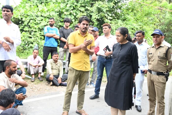 जिलाधिकारी नितिका खण्डेलवाल ने आज तहसील बैनबाग क्षेत्रांतर्गत एनएच-707ए के आपदा प्रभावित क्षेत्र भेडियाना बस्ती (कैंपटी फॉल के नजदीक) पहुंचकर आंशिक धरने पर बैठे ग्रामीणों के साथ वार्ता की। इस मौके पर अधिशासी अभियंता एनएच-707ए नवनीत पांडे ने बताया कि लैंडस्लाइड क्षेत्र का उच्च अधिकारियों द्वारा निरीक्षण किया गया है तथा कल इसका ड्रोन सर्वे किया जाएगा। उन्होंने बताया कि राष्ट्रीय राजमार्ग को ठीक करने में डेढ़ से दो माह का समय लगेगा।