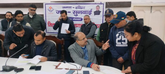 हरिद्वार। जनपदवासियों की समस्याओं का त्वरित निराकरण करने के उद्देश्य से जिलाधिकारी, मयूर दीक्षित की अध्यक्षता में जिला कार्यालय सभागार में जन सुनवाई कार्यक्रम आयोजित किया गया, जिसमें विभिन्न विभागों से संबंधित 87 शिकायते/ समस्याएं दर्ज कराई गई जिसमें से 42 समस्याओं का मौके पर निराकरण किया गया शेष समस्याओं को निस्तारण हेतु संबंधित विभागों को प्रेषित किया गया।