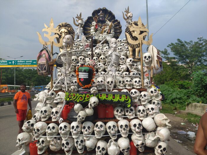 तीसरी विशाल रथ यात्रा के रूप में हरिद्वार से हिसार के लिए रवाना हुई आर्टिफिशियल नरमुंडों से सजी भगवान शिव की प्रतिमा वाली कांवड़ सभी के आकर्षण का केंद्र रही।