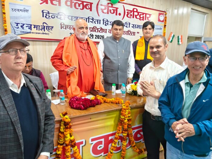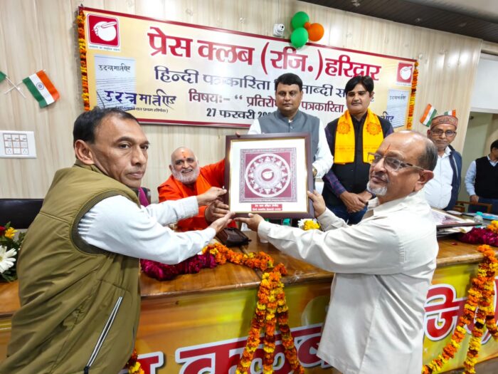 हरिद्वार, 27 फरवरी। हिंदी पत्रकारिता के दौ सौ वर्ष पूरे होने के उपलक्ष्य में प्रैस क्लब में आयोजित किया जा रहे हिंदी पत्रकारिता दिशताब्दी समारोह के तहत शुक्रवार को प्रैस क्लब सभागार में व्याख्यान माला का आयोजन किया गया। कार्यक्रम का शुभारंभ मुख्य अतिथी देव संस्कृति विवि के प्रतिकुलपति डा.चिन्मय पंडया, मुख्य वक्ता नेशनल यूनियन ऑफ जर्नलिस्ट इंडिया के राष्ट्रीय महासचिव प्रदीप कुमार तिवारी, निरंजनी अखाड़े के सचिव श्रीमहंत रामरतन गिरी, प्रेस क्लब अध्यक्ष धर्मेंद्र चौधरी एवं महामंत्री दीपक मिश्रा ने दीप प्रज्वलित कर किया। वरिष्ठ पत्रकार कौशल सिखोला, रजनीकांत शुक्ला, संजय आर्य, संदीप रावत ने स्मृति चिन्ह, रूद्राक्ष की माला एवं गंगाजली भेंटकर अतिथीयों का स्वागत किया।