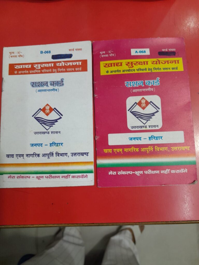 हरिद्वार भेल नगरी यानी की BHELएवम् शिवालिक नगर में जितने भी NFSA और अंत्योदय के राशनकार्ड हैं वह सब राशन कार्ड अपात्र लोगों के बने हुए हैं।यह सब राशन कार्ड वहां जो राशन की दुकान के विक्रेता है उन्होंने अपने पास रखे हैं और जिनके नाम यह कार्ड जारी हैं उनको एपीएल यानी पीले कार्ड दफ्तर से बनवा कर दे रखे हैं।ये दुकानदार प्रतिमाह कार्डधारक को फोन करके बुलाते हैं कि आप आकर अपना राशन कार्ड चढ़वा लो अंगूठा लगा जाओ अन्यथा आपका राशन कार्ड कैंसिल हो जाएगा।इन सभी दुकानदारों ने एक वयक्ति को दैनिक वेतन पर रखा है जो पूरे दिन लोगों को फोन कर कर दुकान पर बुलाता है और अंगूठे लगवाता है इसकी बड़े स्तर पर यदि जांच हो तो सब सामने आ जाएगा NFSA और अंत्योदय के राशन कार्ड का एक भी हकदार भेल और शिवालीक नगर में नहीं है ।ग्राहकों को तो ये भी नहीं मालूम की उनका किस योजना का कार्ड बना है। यह माल सीधे-सीधे राशन दुकानदारों को मिलता है।जिसको यह बाजार में बेच देते हैं और पूरे महीने दुकानें नहीं खोलते हैं। जिलाधिकारी को चाहिए की इस घोटाले की जांच कराएं। लेकिन जिला पूर्ति कार्यालय के घाग पूर्ति निरीक्षकओ से दूरी रखते हुए।