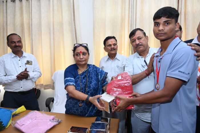 कोटद्वार। विधानसभा अध्यक्ष एवं कोटद्वार विधायक श्रीमती ऋतु खण्डूडी भूषण ने आज माल गोदाम रोड स्थित अपने कैंप कार्यालय में बॉक्सिंग एसोसिएशन पौड़ी से जुड़े कोटद्वार स्टेडियम के 32 बॉक्सिंग चैंपियंस को सम्मानित किया।
