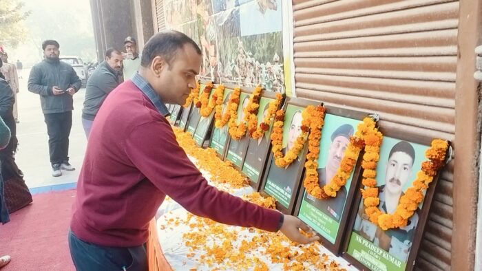 हरिद्वार। विजय दिवस के अवसर पर जिला सैनिक कल्याण एवं जिला प्रशासन के असंयुक्त तत्वधान में जिला कार्यालय सभागार एवं परिसर में कार्यक्रम आयोजित किया गया, जिसमें मुख्य अतिथि जिलाधिकारी मयूर दीक्षित ने 1971 युद्ध में शहीद हुए सैनिकों को नमन करते हुए उनके चित्र पर श्रद्धासुमन अर्पित किए। इस अवसर पर विशिष्ट अतिथि मेयर नगर निगम किरण जैसल मौजूद रही।