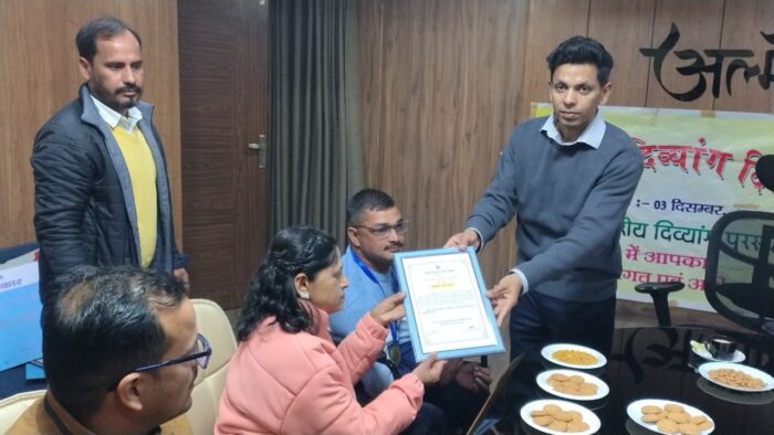 अल्मोड़ा। विश्व दिव्यांग दिवस के अवसर पर जिलाधिकारी अंशुल सिंह ने उत्कृष्ट कार्य करने वाले 3 दक्ष दिव्यांगजनों को राज्य स्तरीय दिव्यांग पुरस्कार प्रदान कर सम्मानित किया।कार्यक्रम में जिलाधिकारी ने सम्मानित दिव्यागजनों से वार्ता करते हुए उनकी समस्याएं विस्तार से सुनी। उन्होंने संबंधित विभागीय अधिकारियों को निर्देश दिए कि दिव्यांगजन की आवश्यकताओं और समस्याओं के निस्तारण हेतु प्रभावी कार्रवाई सुनिश्चित की जाए।