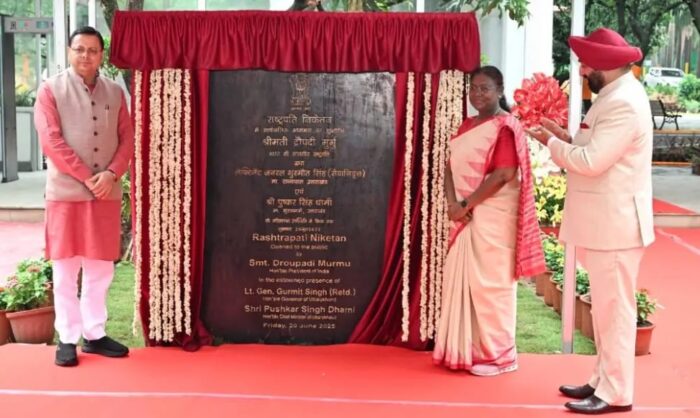 देहरादून। भारत की राष्ट्रपति श्रीमती द्रौपदी मुर्मू ने शुक्रवार को देहरादून में राष्ट्रपति तपोवन और राष्ट्रपति निकेतन के उद्घाटन समारोह में भाग लिया । उन्होंने आगंतुक सुविधा केंद्र, कैफेटेरिया और स्मारिका दुकान सहित सार्वजनिक सुविधाओं का भी उद्घाटन किया और राष्ट्रपति निकेतन में राष्ट्रपति उद्यान की आधारशिला रखी। उन्होंने कल (19 जून, 2025) राष्ट्रपति निकेतन में एक एम्फीथिएटर का भी उद्घाटन किया।