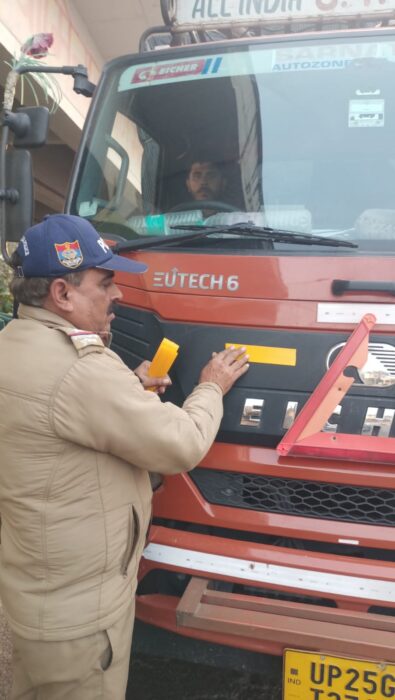 अभियान के दौरान लगभग 400 वाहनों पर रिफ्लेक्टर टेप लगाया गया