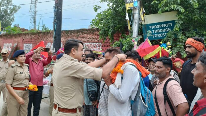 भ्रमण के दौरान कावड़ मेले में आये श्रद्धालुओं को फूल माला पहनाकर एसएसपी देहरादून द्वारा उनका स्वागत किया गया तथा उनसे वार्ता कर उनकी यात्रा के संबंध में जानकारी प्राप्त की गई। वार्ता के उपरांत सभी श्रद्धालुओं को फल, पेय पदार्थ तथा मिष्ठान वितरित करते हुए उनकी सुरक्षित एंव सुगम यात्रा हेतु अपनी शुभकामनाएं दी।