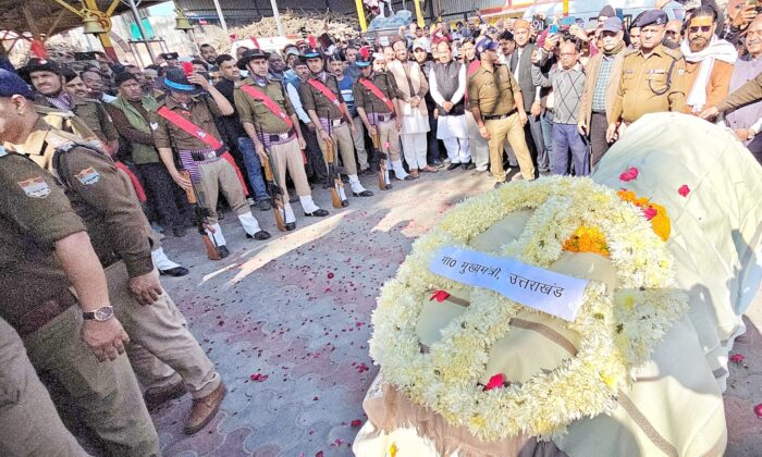 गार्ड ऑफ ऑनर एवं अंतिम सलामी देते हुए राजकीय सम्मान के साथ खड़खड़ी शमशान घाट पर किया गया दाह संस्कार