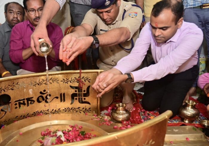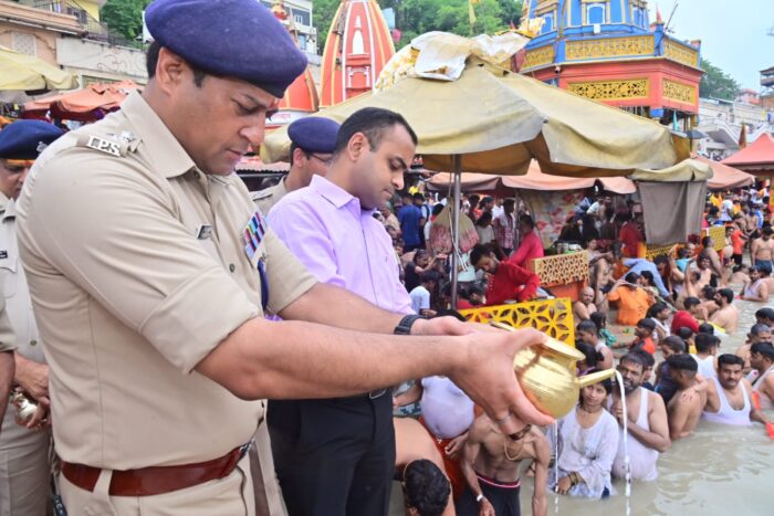 हरिद्वार। तीर्थ नगरी हरिद्वार में लगने वाला सावन मेले का कांवड़ मेला सकुशल संपन्न हो जाने के बाद आज शिवरात्रि के दिन जिलाधिकारी मयूर दीक्षित , वरिष्ठ पुलिस अधीक्षक परमेंद्र डोबाल व नगर निगम के नगर आयुक्त नंदन कुमार के अलावा कई वरिष्ठ पुलिस अधिकारियों ने हर की पैड़ी पहुंचकर मां गंगा की पूजा अर्चना की और मां गंगा का दुग्धभिषेक करने के साथ ही मां गंगा से मेले को से कुशल संपन्न कराने के लिए उनका आशीर्वाद प्राप्त किया।साथ ही कनखल स्थित दकछेश्वर महादेव के मंदिर पर बाबा भोलेनाथ का किया जलाभिषेक।