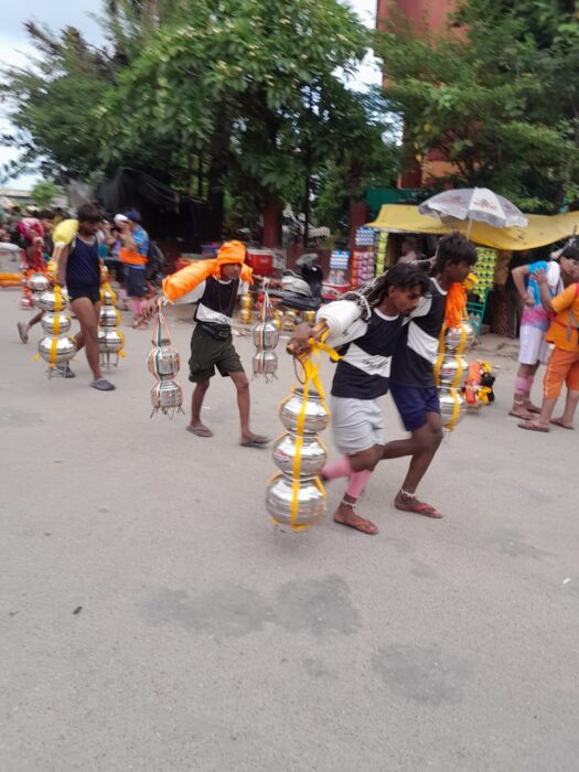 इस बार देखने को मिल रहा है की कांवरिये कांवड़ कम और गंगाजल क्लशो में लेकर ज्यादा निकल रहे हैं ।यह एक दूसरे की देखा देखी हो सकता है।