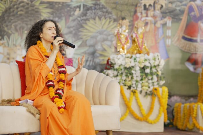 यह हमें अच्छाई, सच्चाई और ऊँचाई की बढ़ने की प्रेरणा देती है। हमारे विवेक और निर्णय शक्ति को भी सशक्त बनाती है। कथा, विचारों में गहनता और स्पष्टता लाती है। कथा का प्रत्येक चरित्र, प्रत्येक प्रसंग हमारे मन में धैर्य, साहस और आत्मसंयम की प्रेरणा देता है। कथा हमारे भाव, विचार और व्यवहार में विलक्षण परिवर्तन करती है और जब कथा गोवत्स श्री राधाकृष्ण जी के श्री मुख से भाव भक्ति से हो तो वह अपार आनंद प्रदान करती हैं। साध्वी भगवती सरस्वती जी ने कहा कि श्रीमद्भागवत भाव कथा केवल सुनने का अनुभव नहीं, बल्कि जीवन में धर्म, भक्ति और करुणा का अनुप्रयोग है।