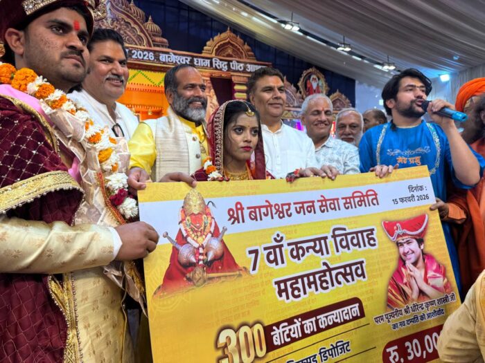 और उन सभी लोगों ने इन नव युगल जोड़ों को आशीर्वाद दिया और यहां पर पूज्य श्री धीरेंद्र कृष्ण शास्त्री जी भी नव दंपति को आशीर्वाद देने के लिए मौजूद थे,