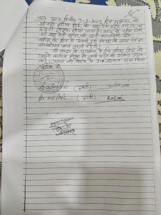 अध्यक्ष जी ने सीमा गिरी को पहले ट्रस्टी न मानते हुए, नोटिस भिजवाया ,जिलाधिकारी के सामने सीमा गिरी को ट्रस्टी के रूप में पेश कर दिया।