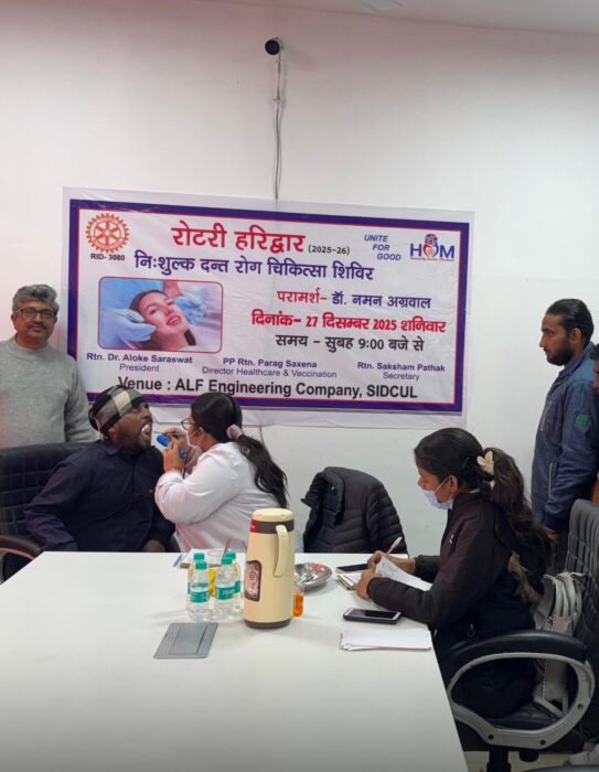 आज दिनांक 27 दिसंबर को रोटरी क्लब हरद्वार ने अपने सामाजिक सरोकारों को और गति देते हुए दो स्वास्थ्य शिविरों का सफल आयोजन किया।
