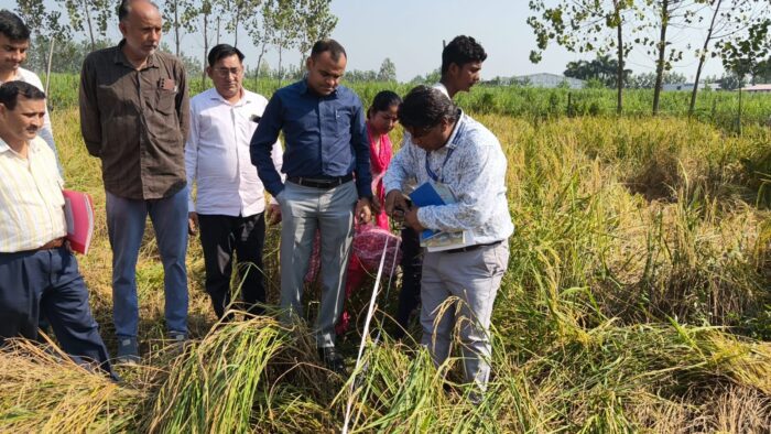 जिसके के अन्तर्गत गुरुवार को जिलाधिकारी मयूर दीक्षित द्वारा जनपद हरिद्वार की तहसील हरिद्वार के ग्राम मनोहरपुर के काशतकार अनिल कुमार के खेत सं0 219 में फसल धान पर रैण्डम पद्धति से योजित कटिंग प्रयोग का निरीक्षण किया गया।