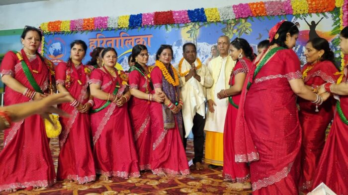 हरिद्वार। गोरखाली माहिला कल्याण समिति एवं हाम्रो स्वाभिमान ट्रस्ट के संयुक्त तत्वावधान में बैरागी कैंप स्थित बड़े उमा महेश्वर परमार्थ आश्रम में हरितालिका तीज के उपलक्ष्य में भव्य सांस्कृतिक कार्यक्रम का आयोजन किया गया। हरिद्वार के अलावा देहरादून, रायवाला, ऋषिकेश, डोईवाला, रुड़की, छिदरवाला, मोतीचूर और गाजीवाला से भी सैकड़ों गोरखाली महिलाएं और पुरुष कार्यक्रम में शामिल हुए।